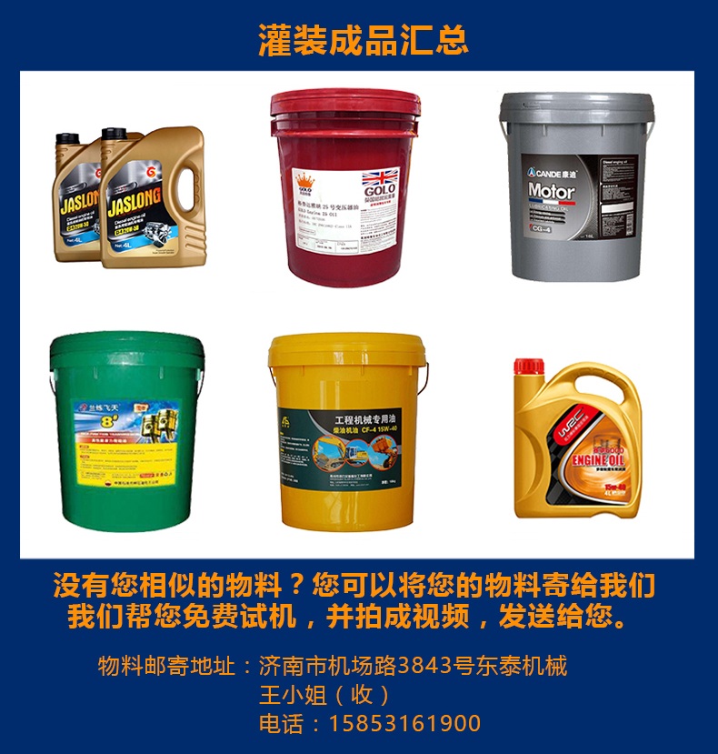 本机是根据润滑油的特性而设计的一款全自动称重式润滑油灌装机,该机设计紧凑合理,外形简洁美观大气,灌装量调节方便,精度高