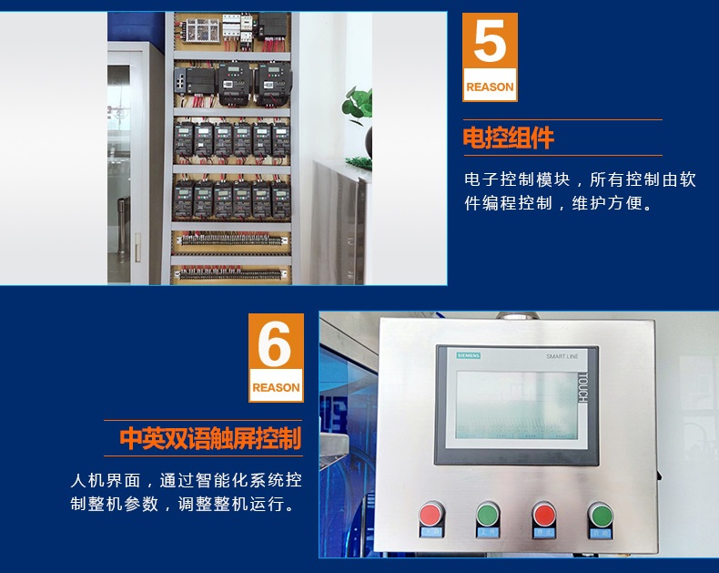 6.人机界面,通过智能化系统控制整机参数,调整整机运行,中英双语触摸屏控制。