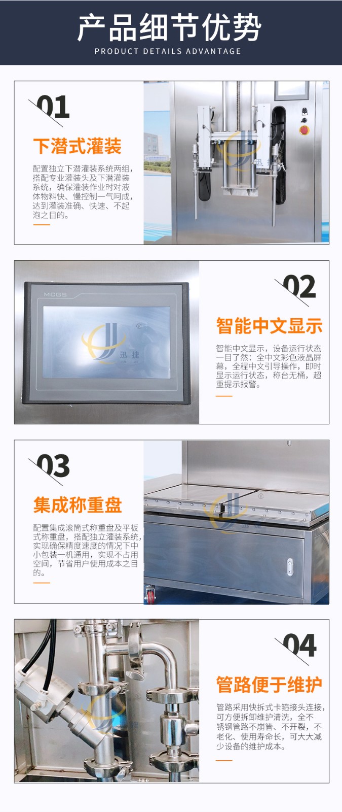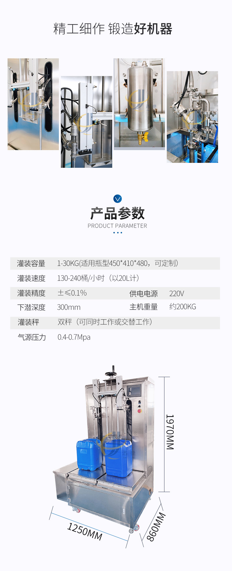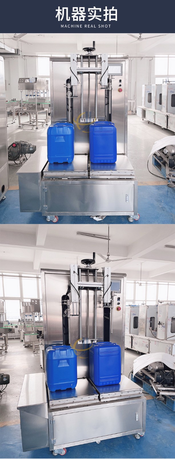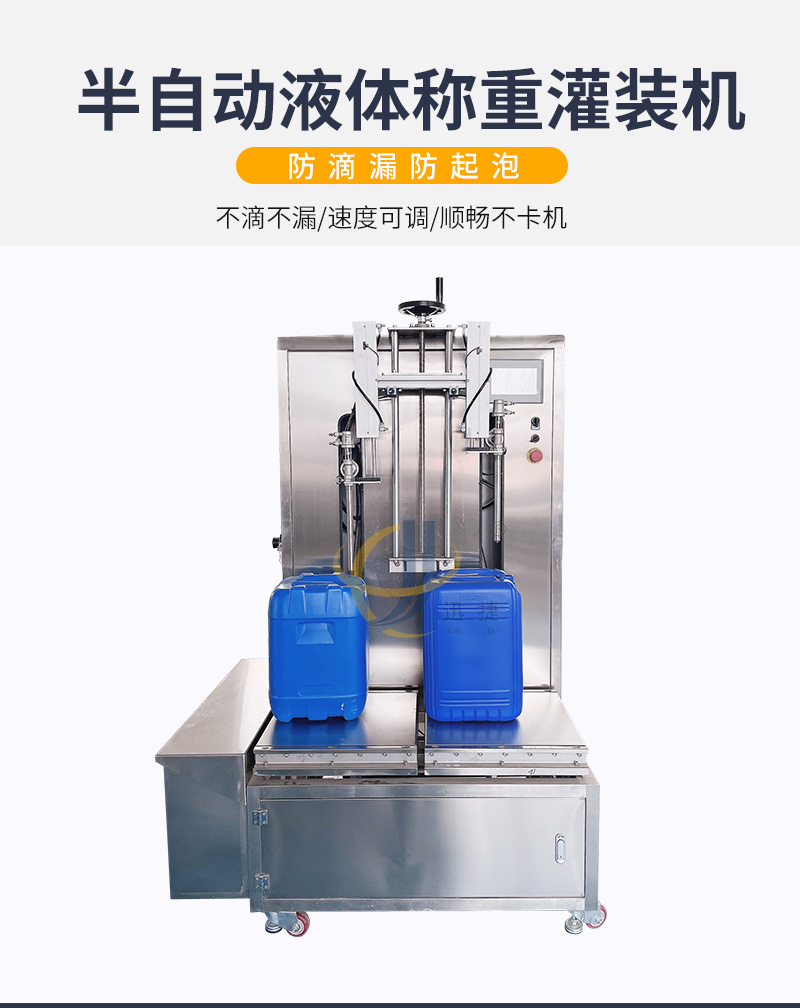 半自动液体称重灌装机适用于各种水剂以及高泡类液体的灌装。如:饮料、醋、酱油、液体化妆品、蛋白液、玻璃水等。
