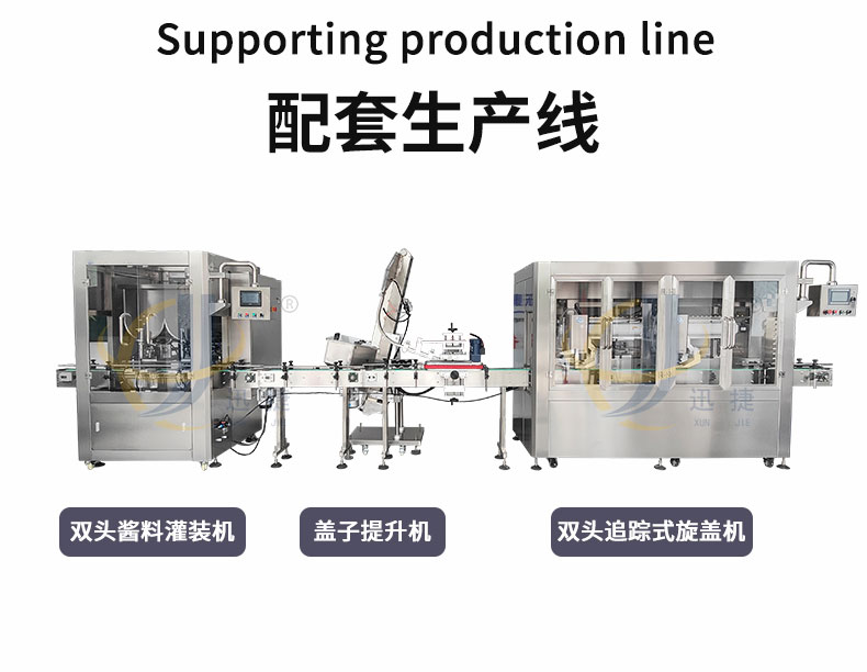 双头高速酱料灌装机适用于调味品中带颗粒并且浓度较大的辣椒酱、豆瓣酱、花生酱、香菇酱、果酱、牛油火锅底料。