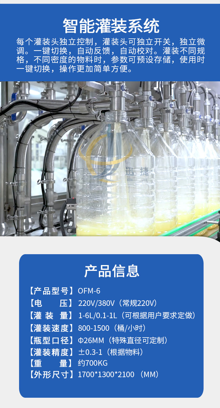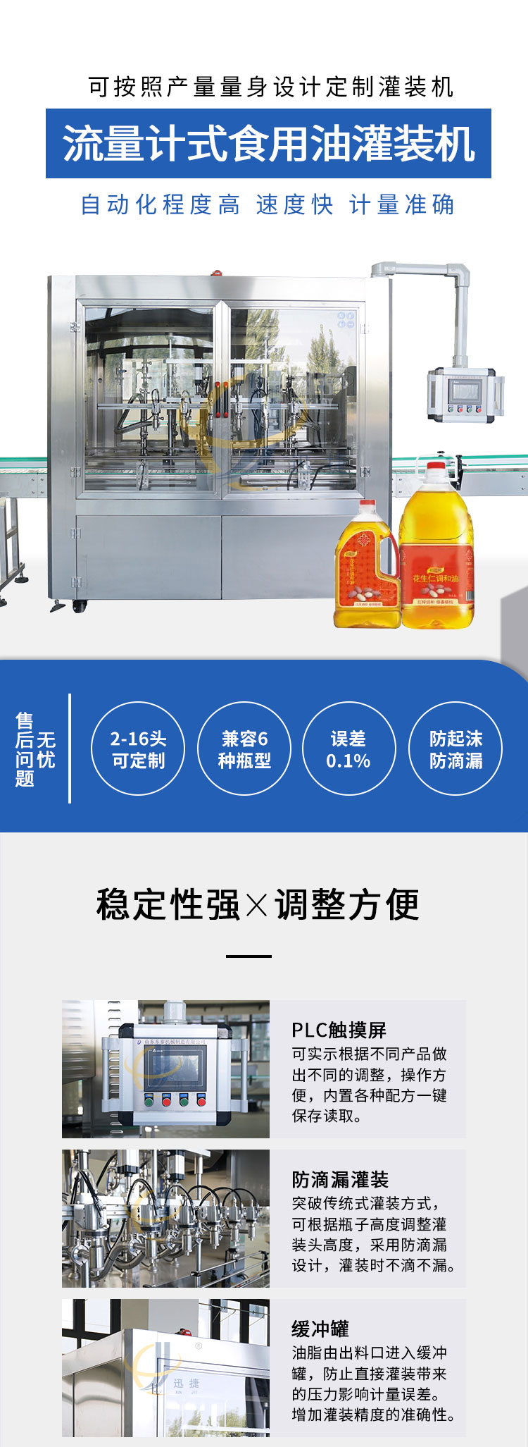 流量计食用油灌装机适用于亚麻籽油、菜籽油、大豆油、芝麻油、橄榄油、花生油、玉米油、山茶油等食用油灌装。
