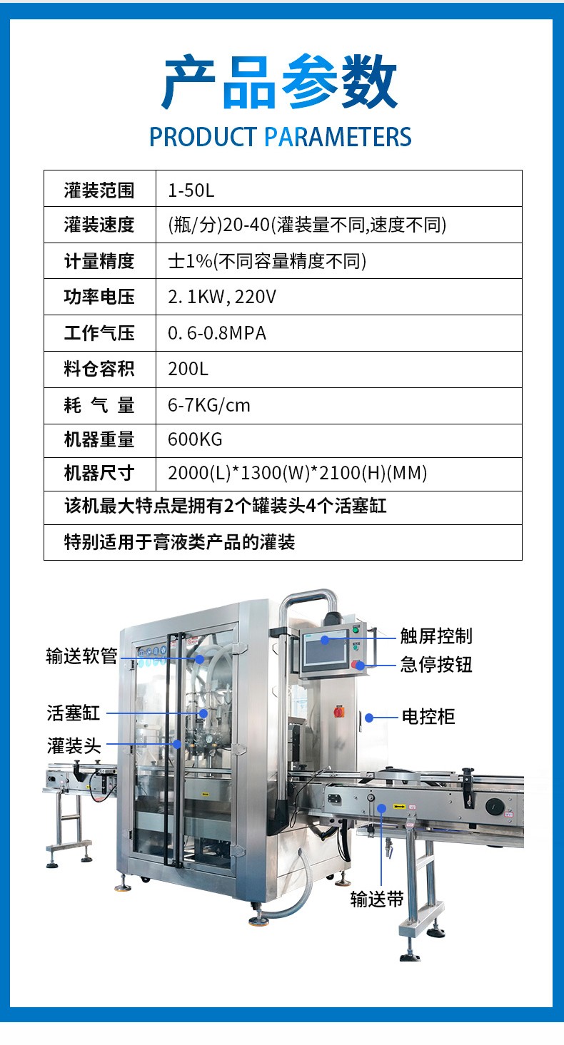 跟踪式调味酱灌装机设备配置定量灌装、定液位灌装两种方式,计量误差2克。定量灌装保证每一瓶的灌装质量。