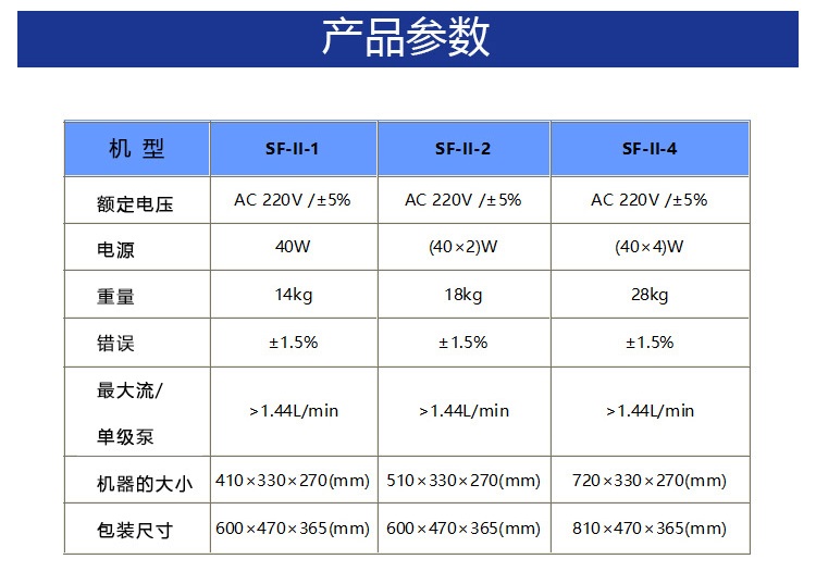 8、灌充量SF-II从1ml至10000ml可调;SF-I从10ml-80000ml可调,调节方便。
