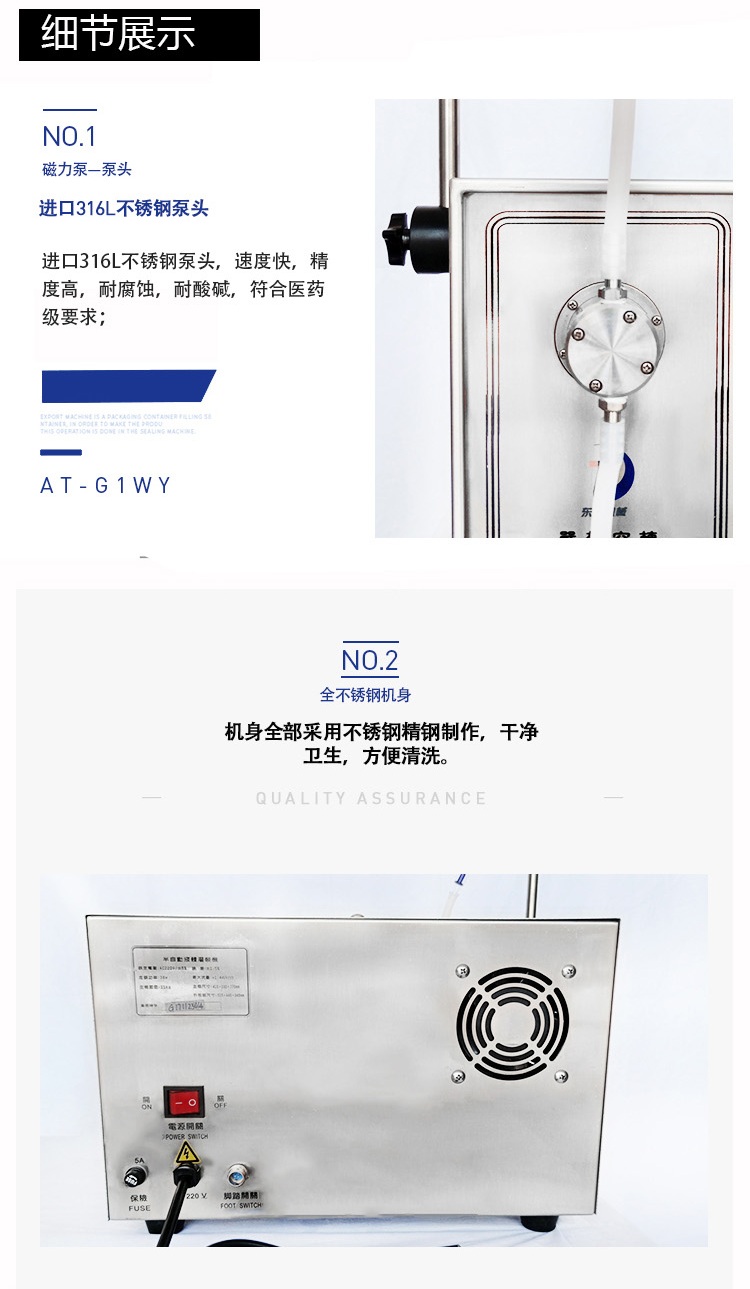 磁力泵式半自动液体灌装机细节展示图:
